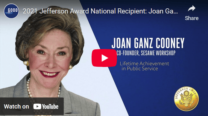 Joan Ganz Cooney - 2021 Jefferson Awards Recipient for Lifetime Achievement in Public Service